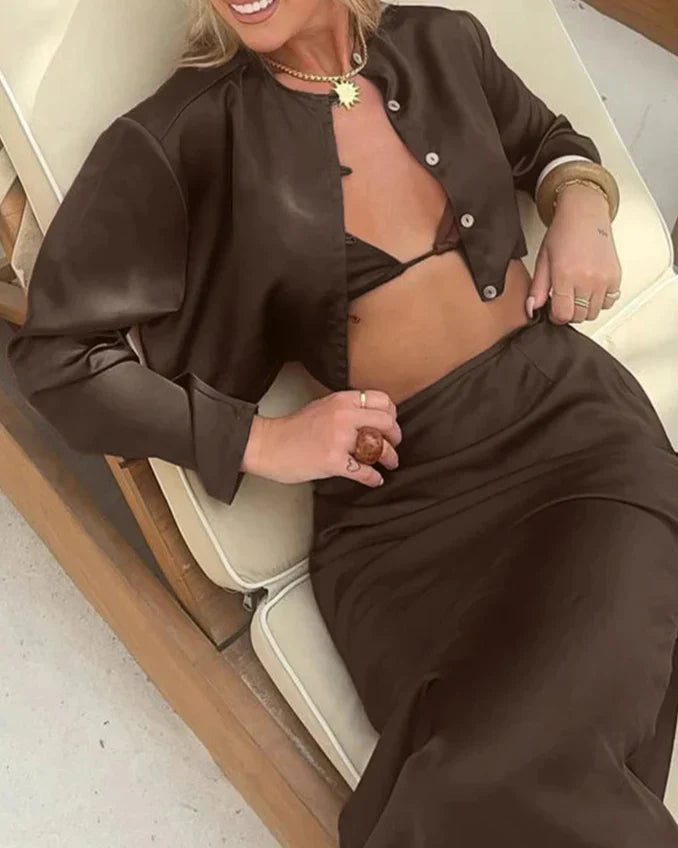הסט עשוי מ-96% סיבים סינתטיים (פוליאסטר וספנדקס), עם גזרה ישרה שמדגישה את הקימורים ומספקת נוחות וגמישות. הבדים רכים ומעט ממתחים.
